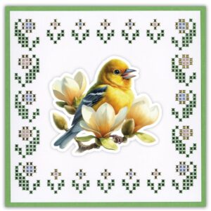 Deze set met Hobbydots-Sparkles bevat alle materialen voor 3 vierkante kaarten. De inhoud bestaat uit vier Sparkles stickervellen, drie 3D-afbeeldingen, drie witte oplegkaarten met bijpassende patronen en drie vellen kaartkarton. Het patroon is in kleur voorgedrukt op de oplegkaarten, waardoor je de stickers, zonder een Led Board te gebruiken, direct hierop kunt plakken.